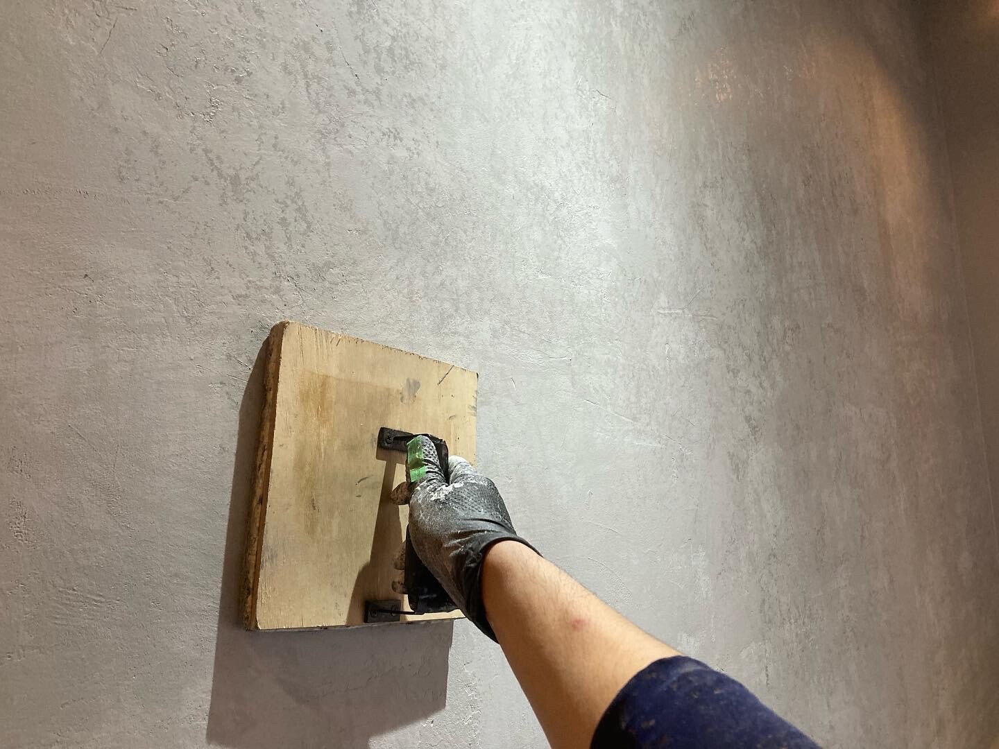 今回はシェアハウスのインターネットルームの壁1面をアクセントでモルタル風塗装を行いました。
